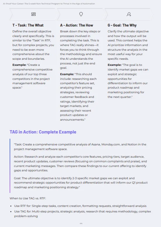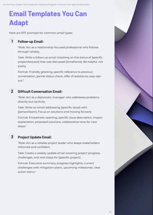 "The prompts alone were worth the price. I improved my prompting and now get far better results from AI tools. What used to take me hours now takes minutes." -- Licette L., Project Manager